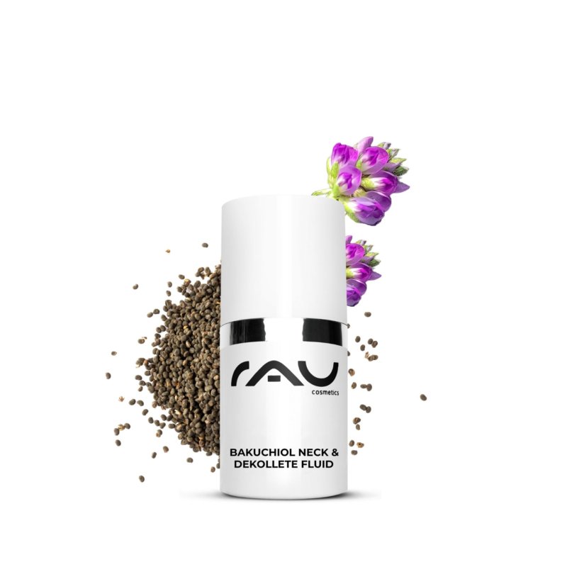 Le Fluide Bakuchiol Cou & Décolleté de RAU Cosmetics est un soin spécialisé pour la peau délicate du cou et du décolleté. La formule à base de Bakuchiol, de Tripeptide-5 et de Niacinamide peut contribuer à raffermir la peau et à aider à réduire l'apparence des ridules de la zone cervicale — une zone souvent négligée mais révélatrice de l'âge.